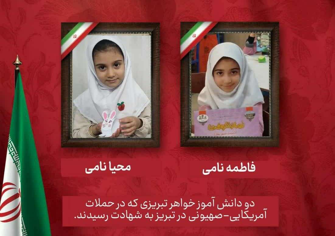 Fatima and Mahya: Two young sisters who were victims of this strike. The body of Fatima, a second-grade student, was found after hours of searching while rescue workers stood weeping over her; they had held onto hope for her survival until the very last moment.